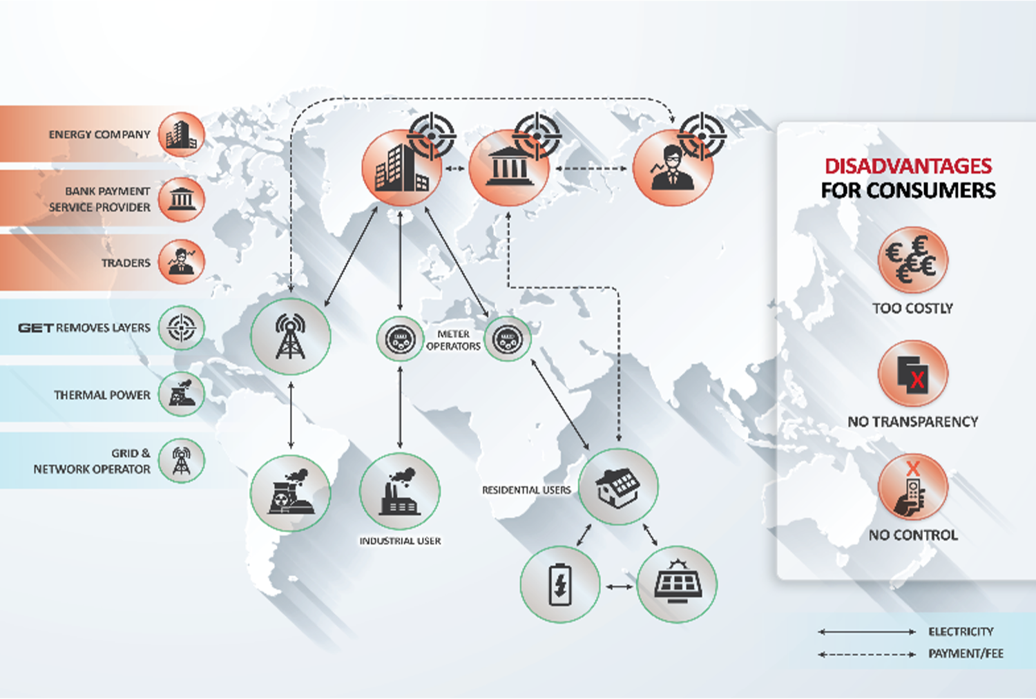 - GET’s platform will provide trading & infrastructure services to supply clean electricity to retail electricity providers (B2B) and private electricity consumers (B2C) at a localised geographical region and cross border.